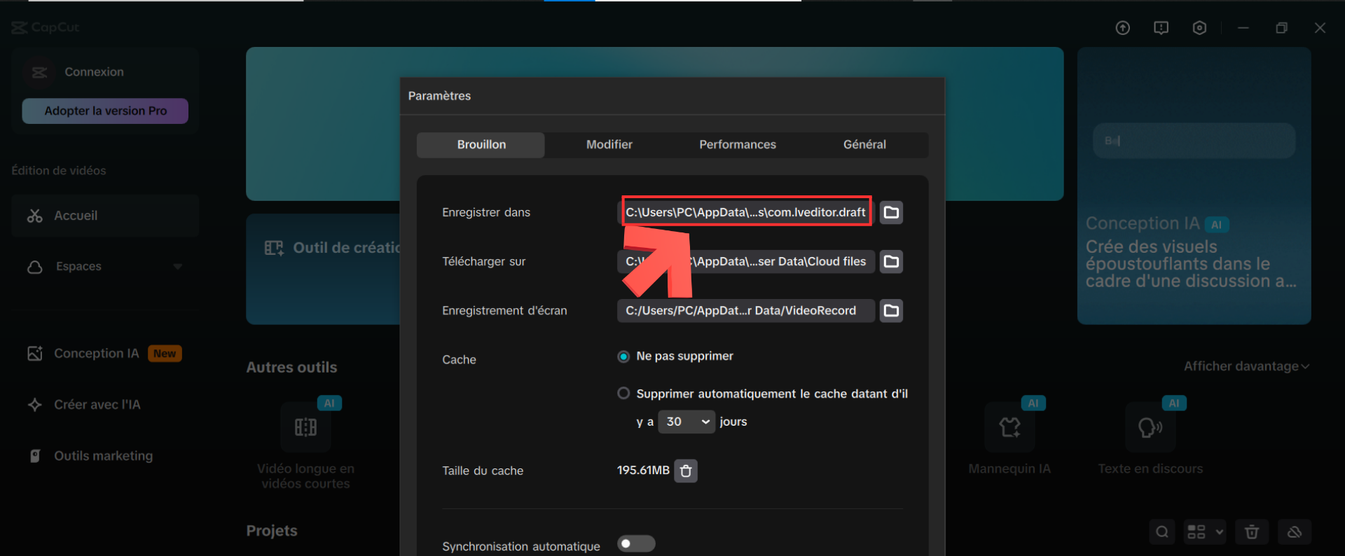 Vous pouvez copier le chemin en ouvrant l'explorateur de fichiers en cliquant sur le bouton à droite.